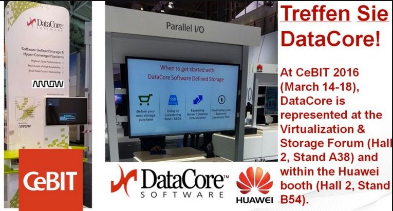 DataCore ist auf der CeBIT 2016 vom 14. bis 18. März auf dem Virtualisation, Security & Storage Forum (Halle 2, Stand A38) sowie am Huawei-Stand (Halle 2, Stand B54) vertreten.