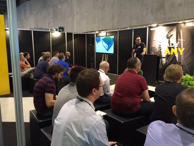 Die Aufnahme entstand auf der VMworld in San Francisco. Und so sah es heute auf der VMworld Europe in Barcelona aus – laut Twitter: The men in black “are showing off the revolutionary Parallel I/O Software and everyone is LOVING IT! Stand S118″