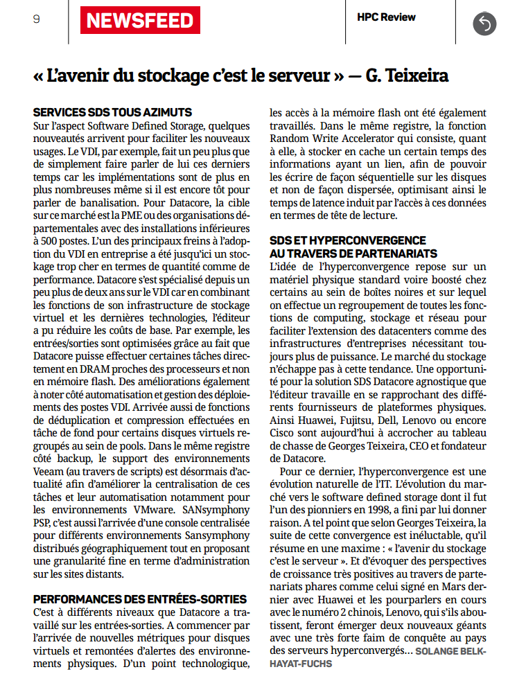 S’il vous plaît voir page 8 – Interview George Teixeira, CEO de DataCore